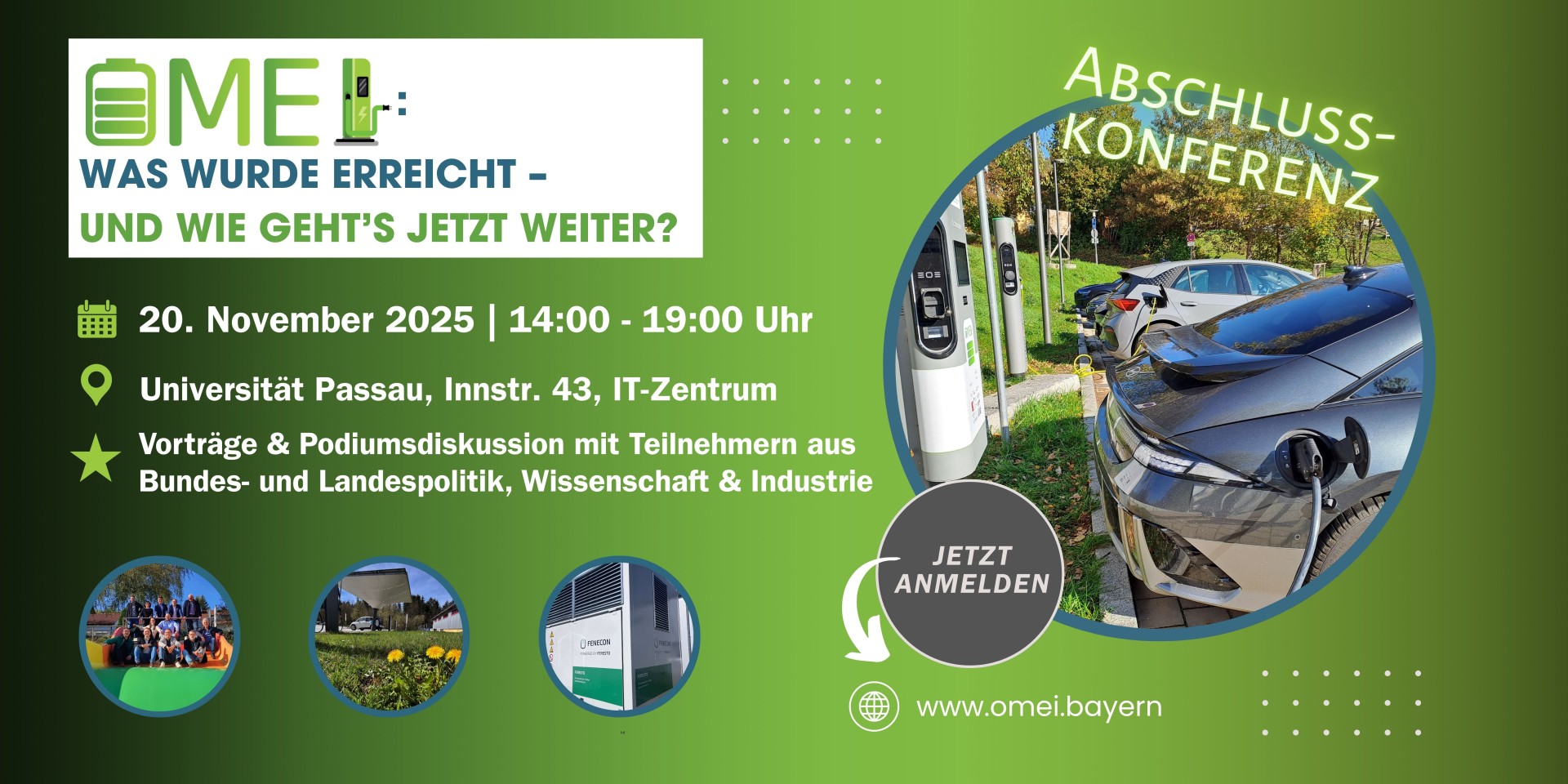 Da unser Projekt OMEI - Open Mobility Elektro Infrastruktur zu Ende geht möchten wir einen spannenden Einblick in unsere Forschung und Ergebnisse von OMEI und einen Ausblick über das Projekt hinaus geben.